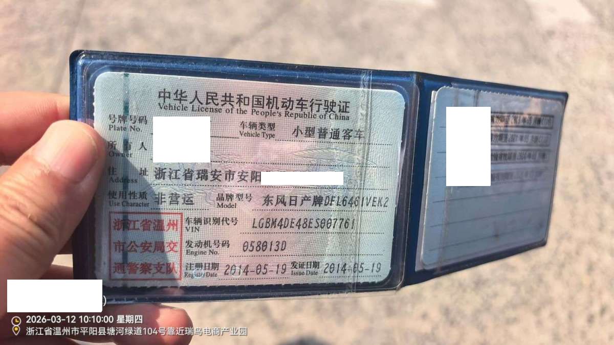 车辆归属地 浙江省温州市 车辆停放仓库 浙江省温州市