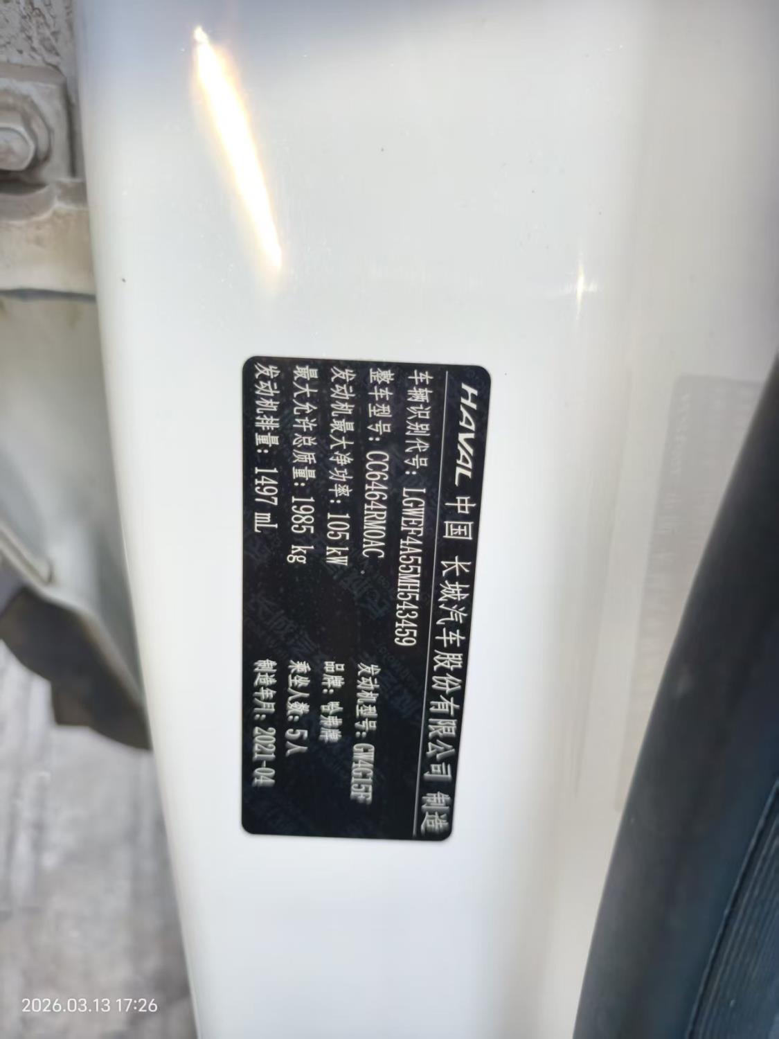 初次登记日期 2021-05-11 车辆名称 哈弗H6
