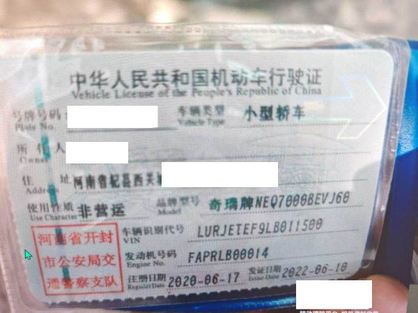 车牌号 豫****** 品牌 奇瑞