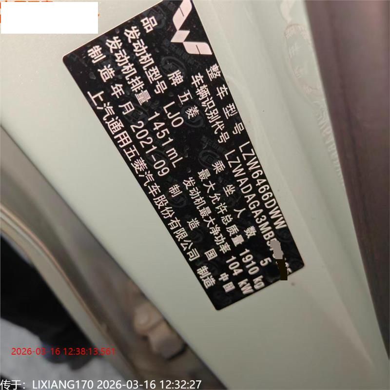 初次登记日期 2021-09-22 车辆名称 五菱汽车 五菱星辰