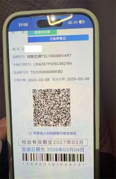 初次登记日期 2025-03-08 车辆名称 特斯拉 Model