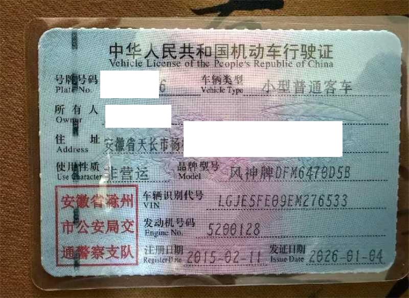 车辆归属地 安徽省滁州市 车辆停放仓库 安徽省滁州市滁州市