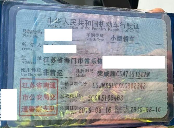 初次登记日期 2019-08-16 车辆名称 荣威i6经典
