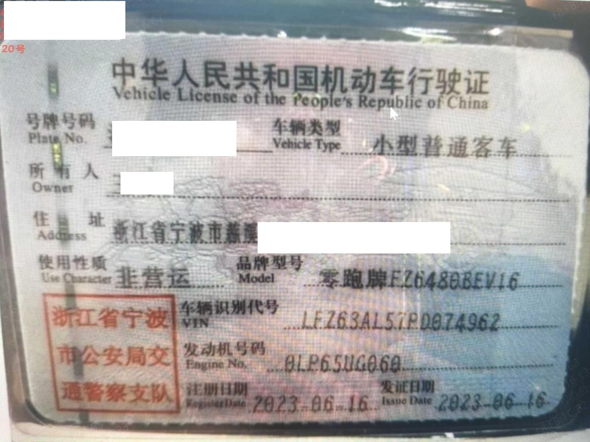 初次登记日期 2023-06-16 车辆名称 零跑汽车 零跑
