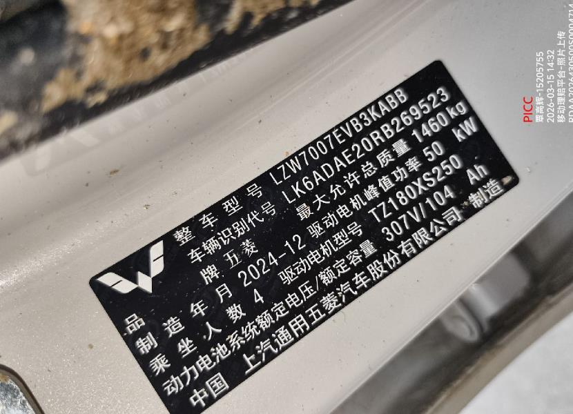 初次登记日期 2025-03-11 车辆名称 五菱汽车 五菱缤果