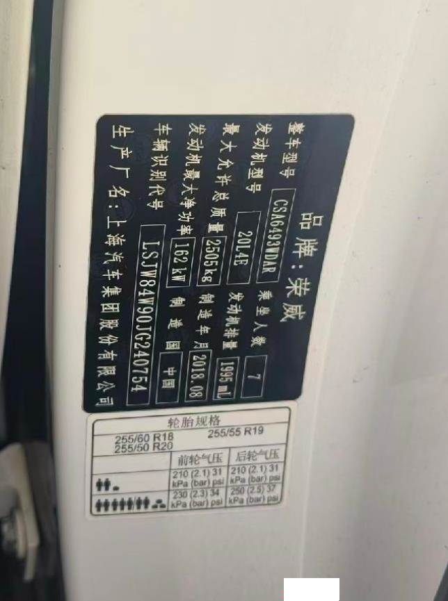 初次登记日期 2018-12-19 车辆名称 荣威RX8