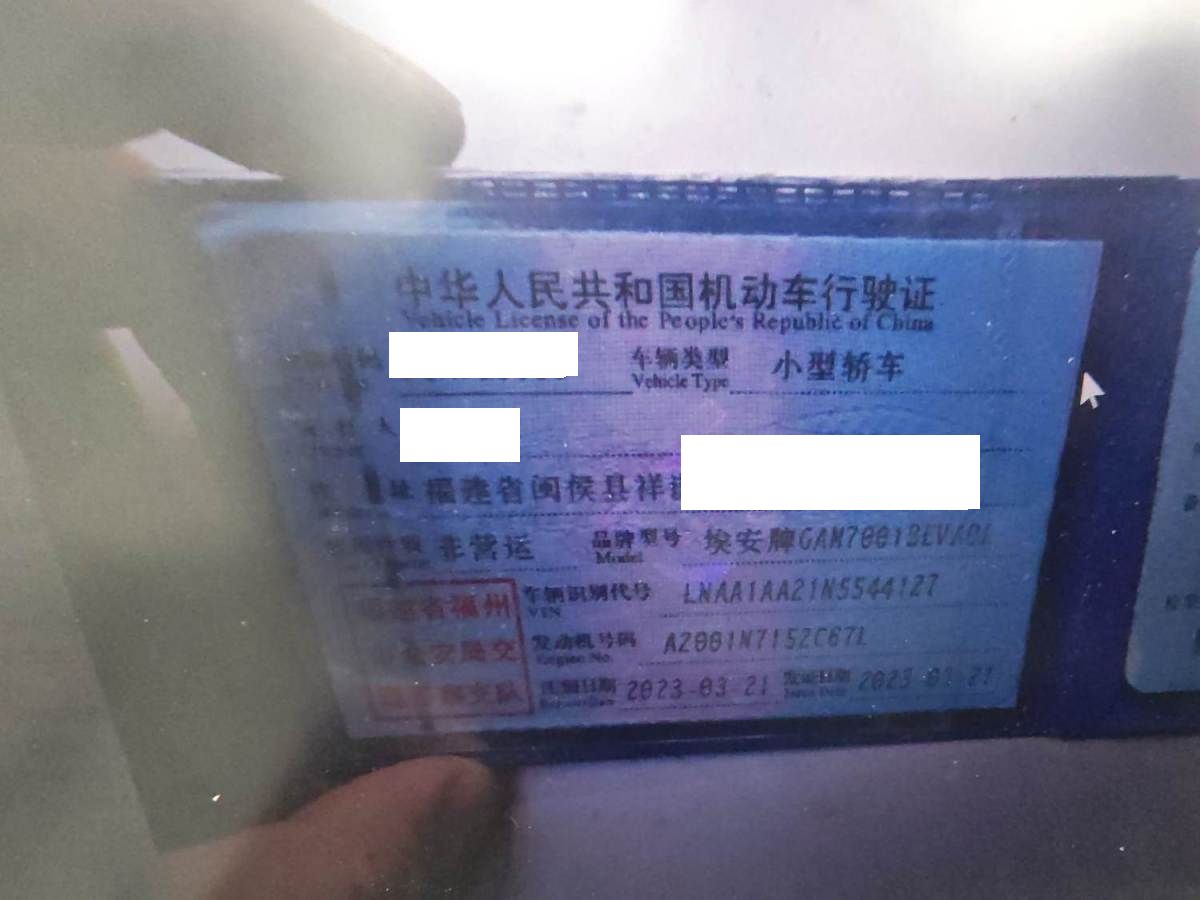 初次登记日期 2023-03-21 车辆名称 埃安 AION