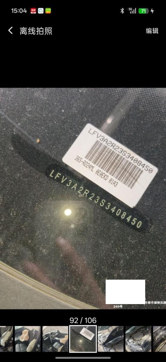 底盘号码 LFV3A2R23S3408450 变速箱类型 自动