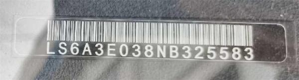 底盘号码 LS6A3E038NB325583 变速箱类型 自动