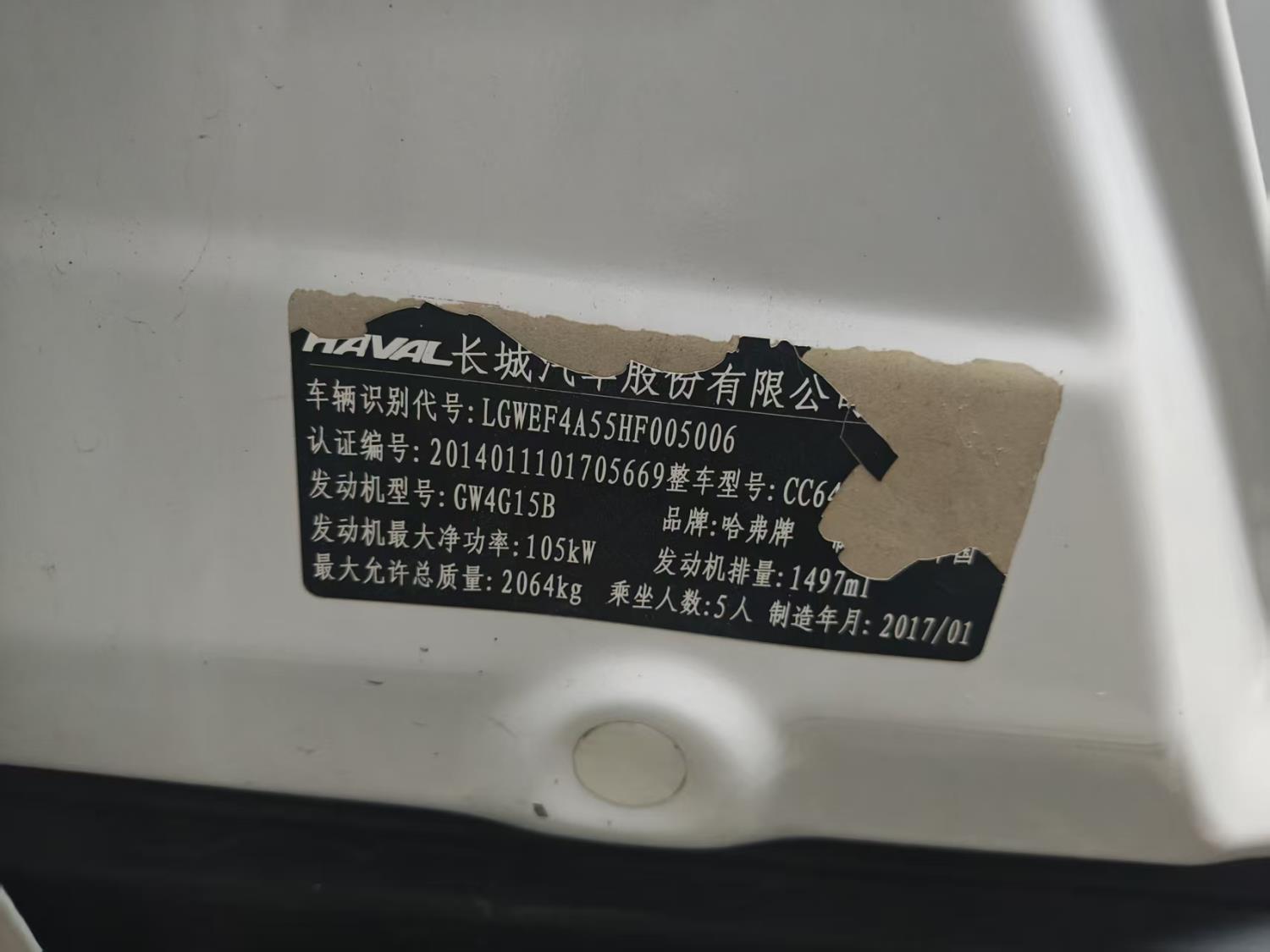 初次登记日期 2017-02-24 车辆名称 哈弗H6
