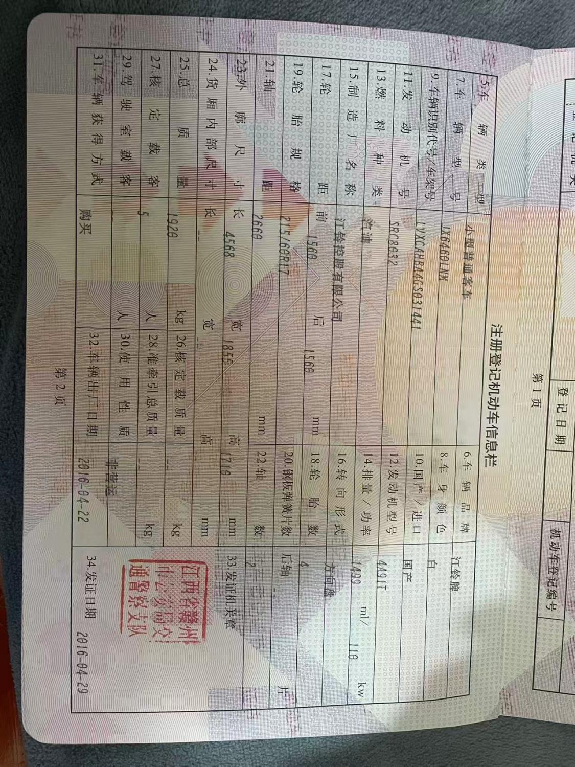 初次登记日期 2016-04-29 车辆名称 陆风X5