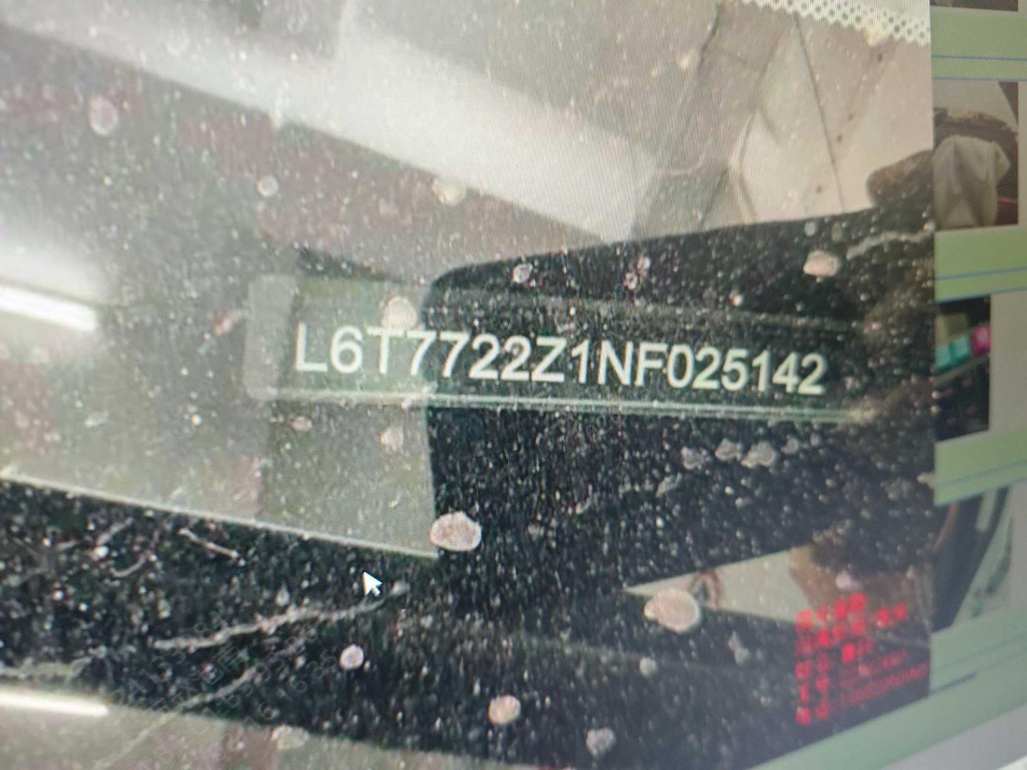 底盘号码 L6T7722Z1NF025142 变速箱类型 自动