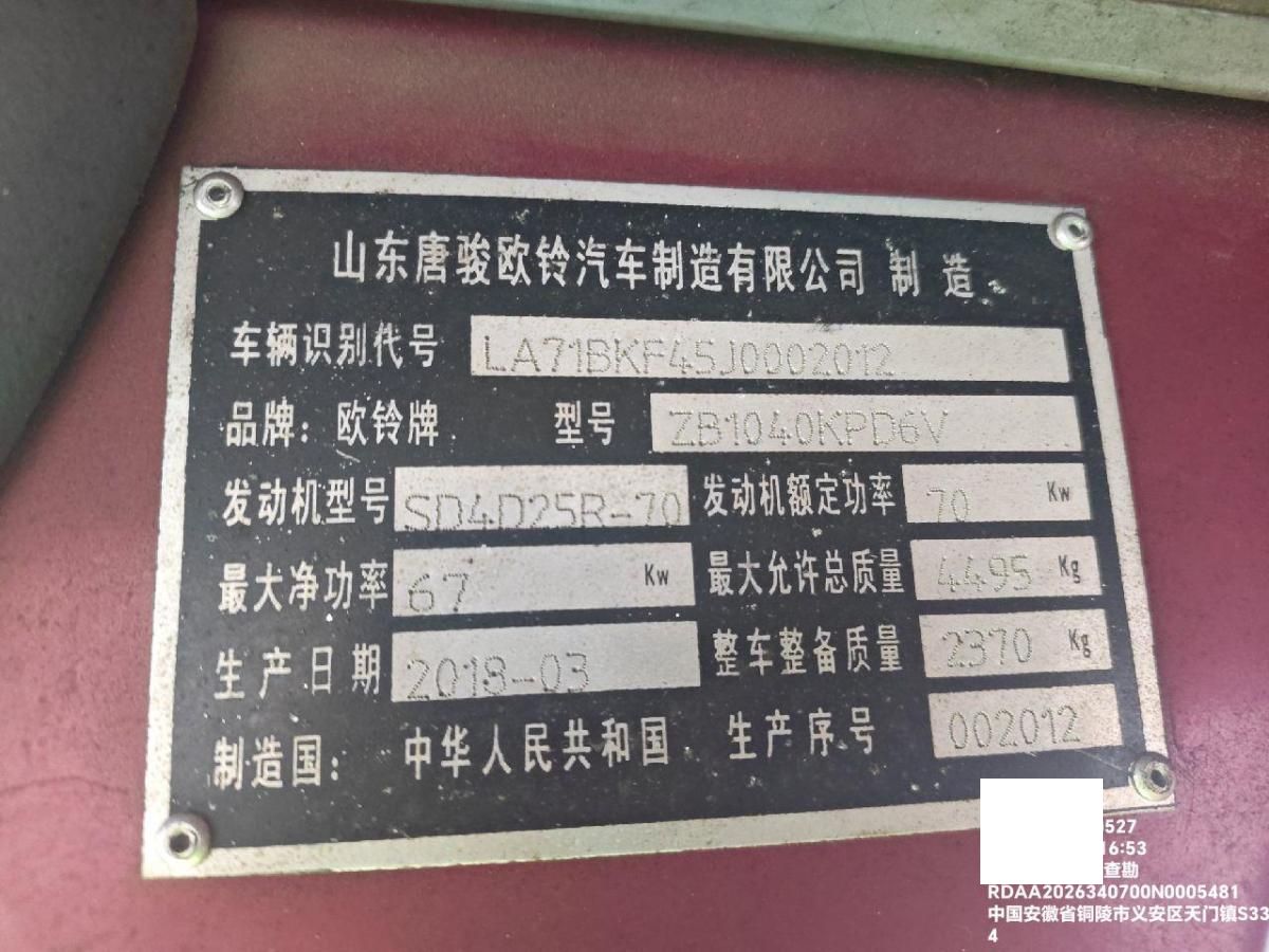 初次登记日期 2018-11-22 车辆名称 唐骏汽车 欧铃T1