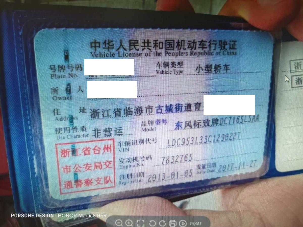 车牌号 浙****** 品牌 东风标致