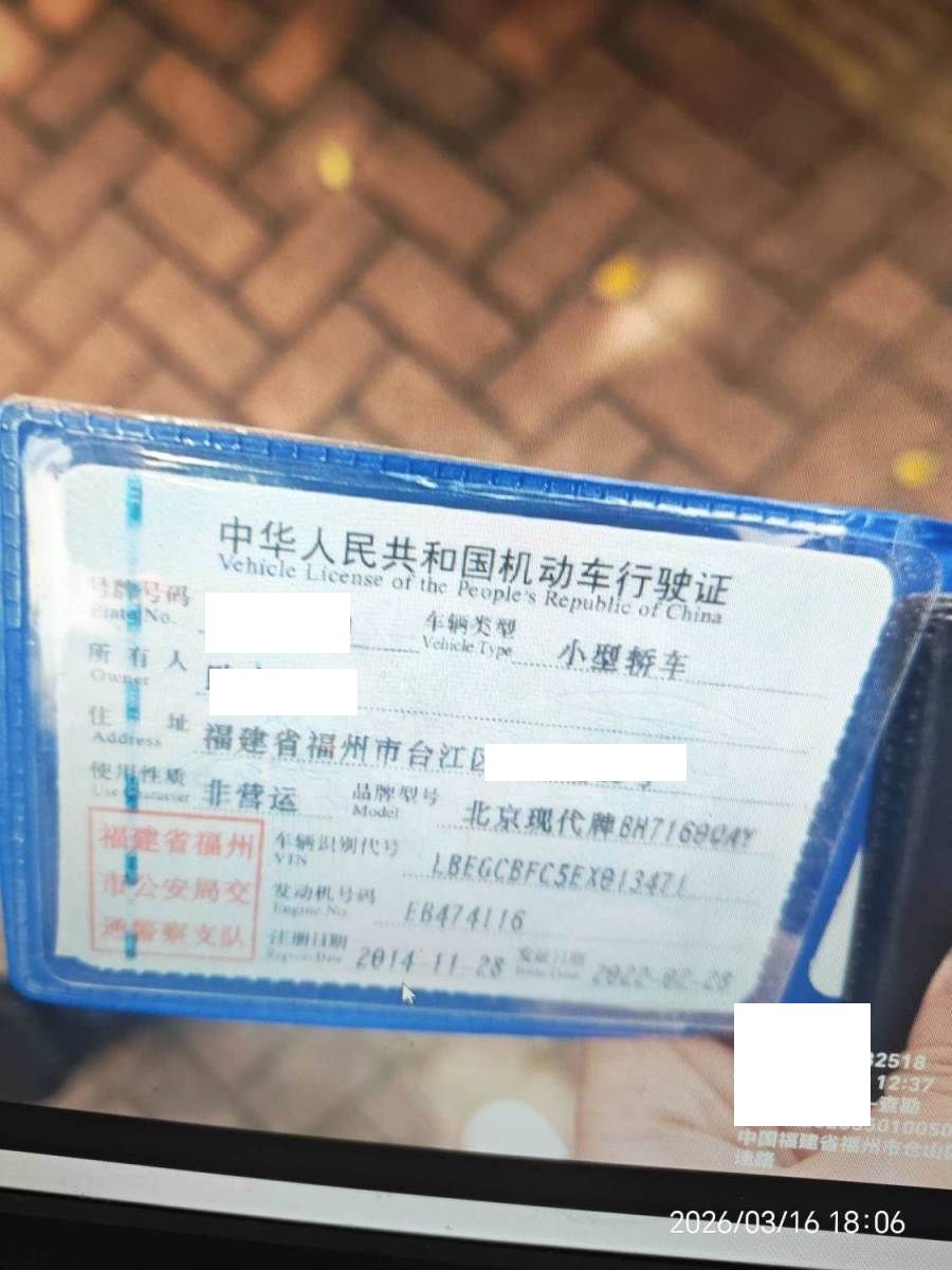 车牌号 闽****** 品牌 现代