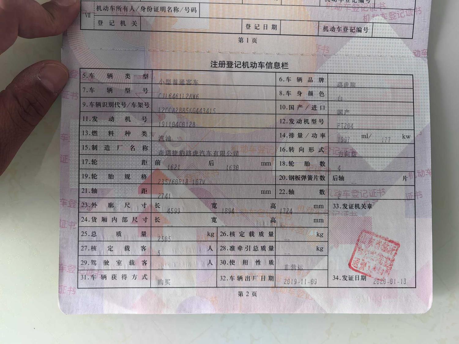 初次登记日期 2020-01-13 车辆名称 路虎 发现神行