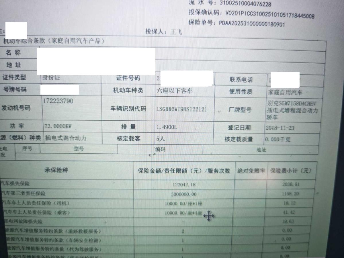 车牌号 沪****** 品牌 别克