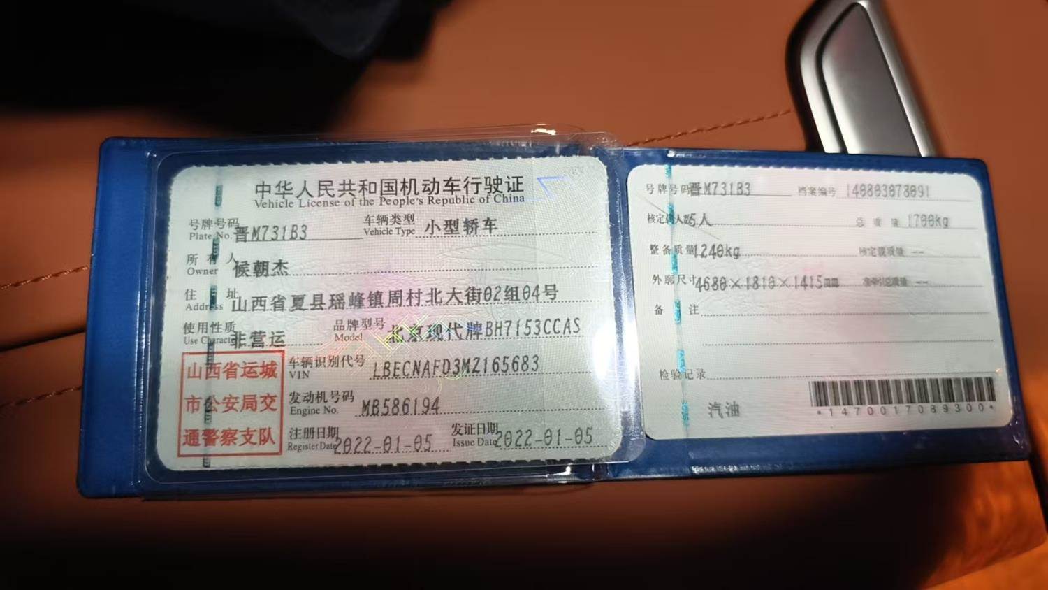 车牌号 晋****** 品牌 现代