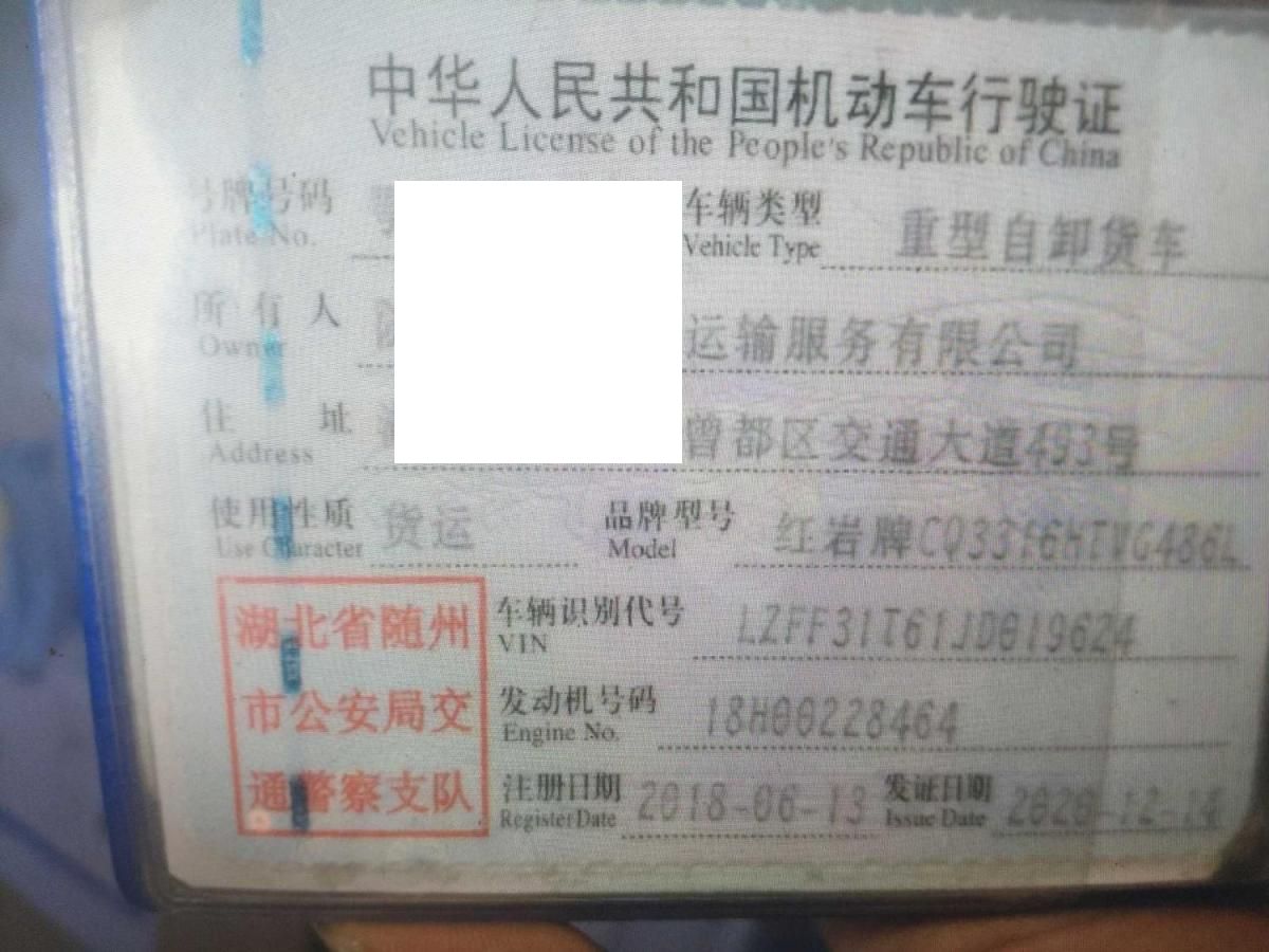 初次登记日期 2018-06-13 车辆名称 红岩 红岩自卸车