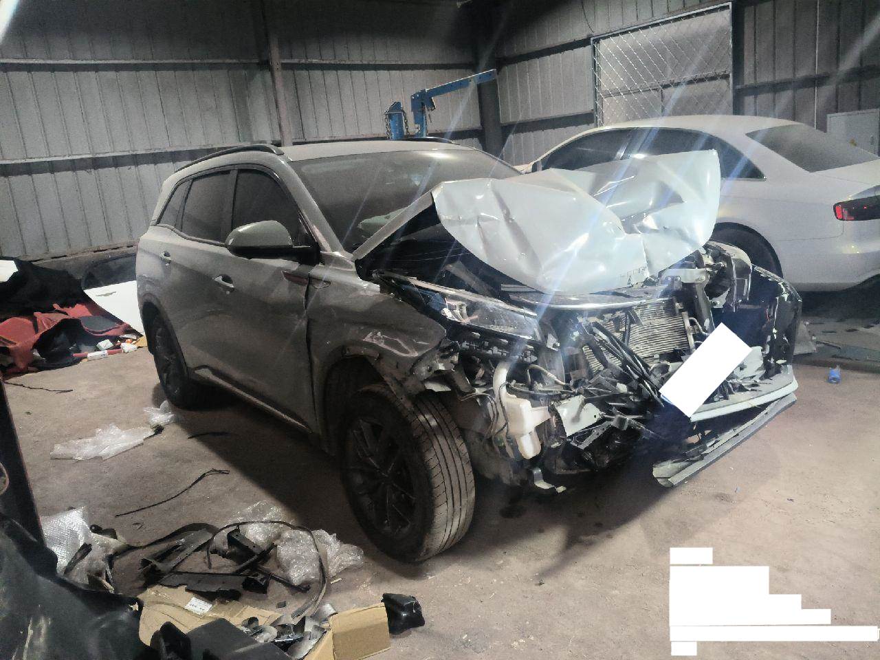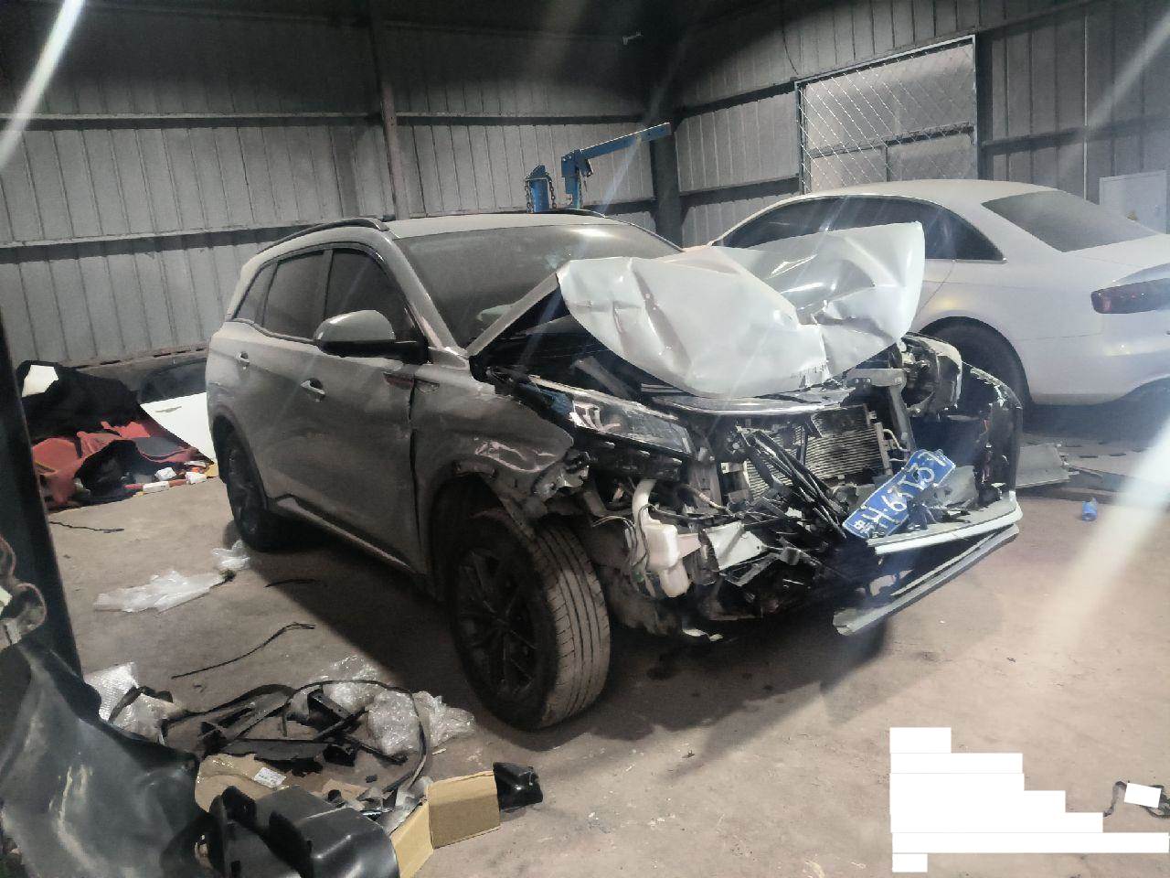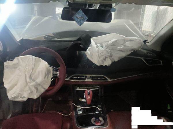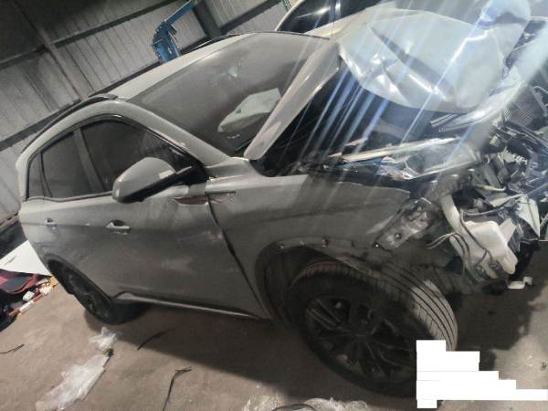高速行驶前部撞福田后右侧又撞护栏,造成前部受损严重,右侧一侧受损,右前悬挂和主副气囊受损。现场损坏丢失前中网和前杠附件等。发动机变速箱以实地验车为准。该车车型为2022款东风小康 SUV 1.5T 手自一体 6座豪华型