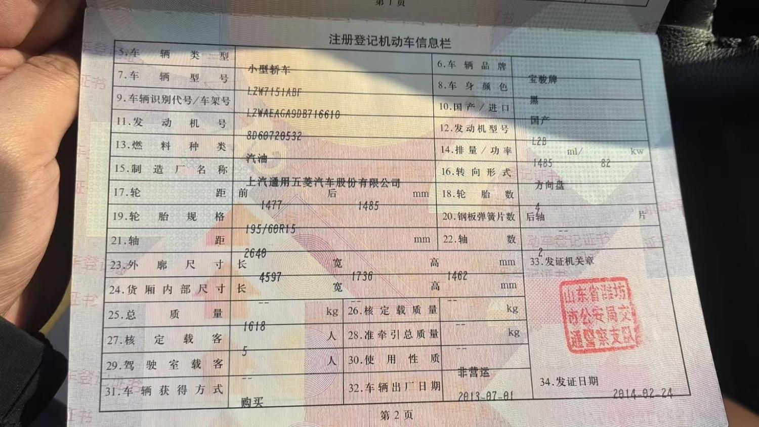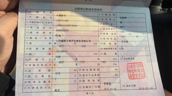 初次登记日期 2014-02-24 车辆名称 宝骏630