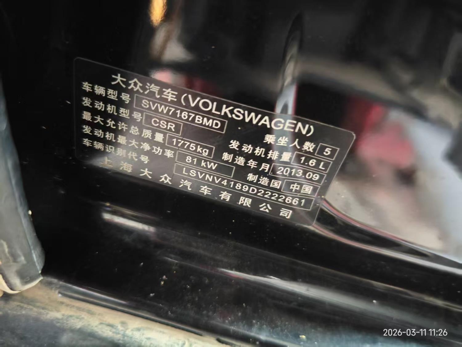 初次登记日期 2013-10-21 车辆名称 大众 朗逸