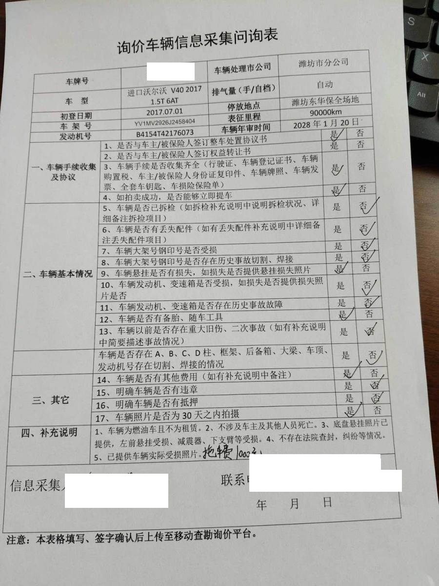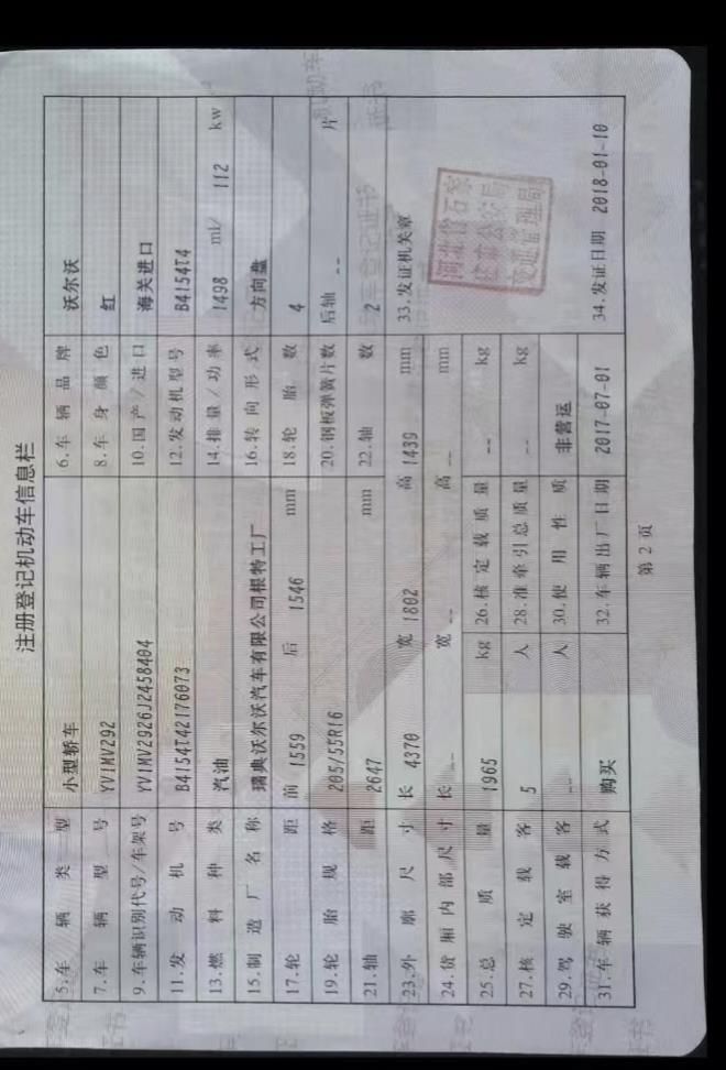 初次登记日期 2018-01-10 车辆名称 沃尔沃V40