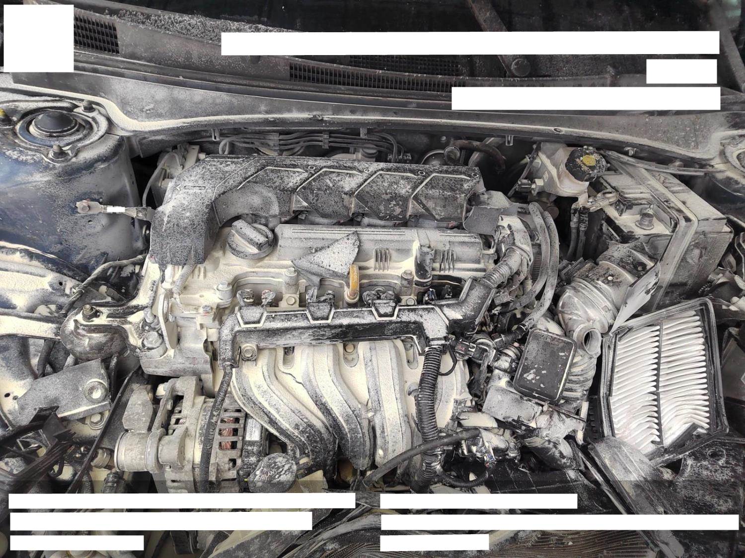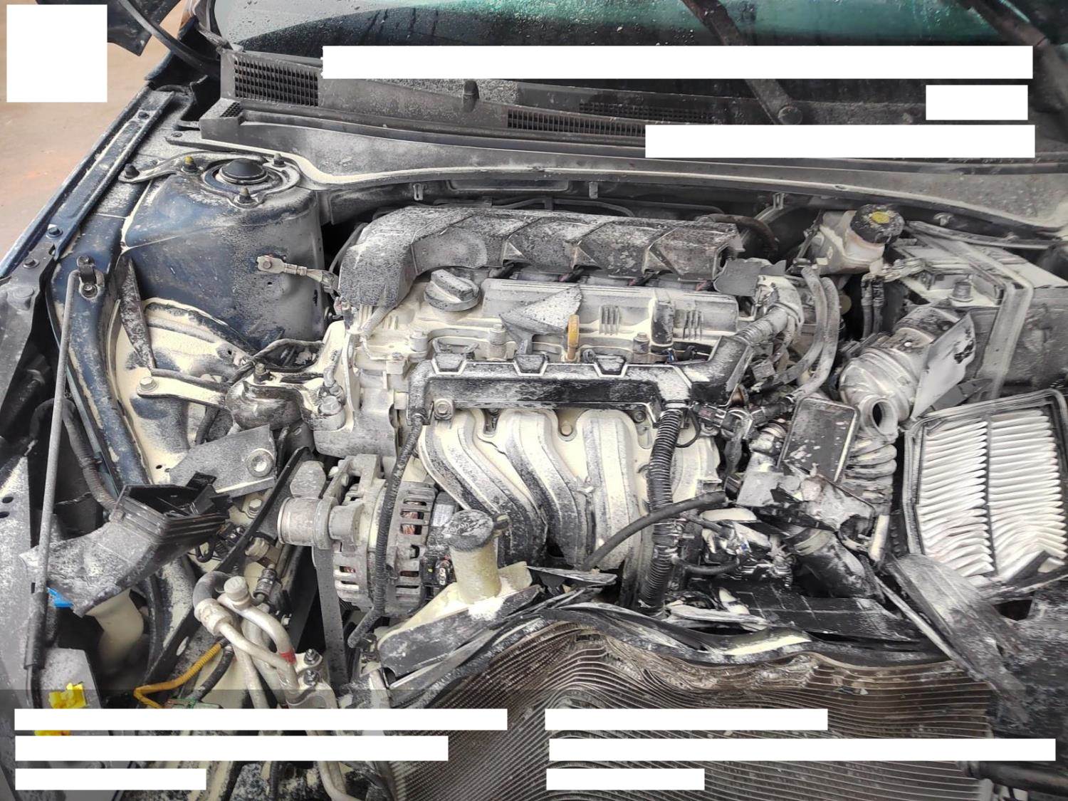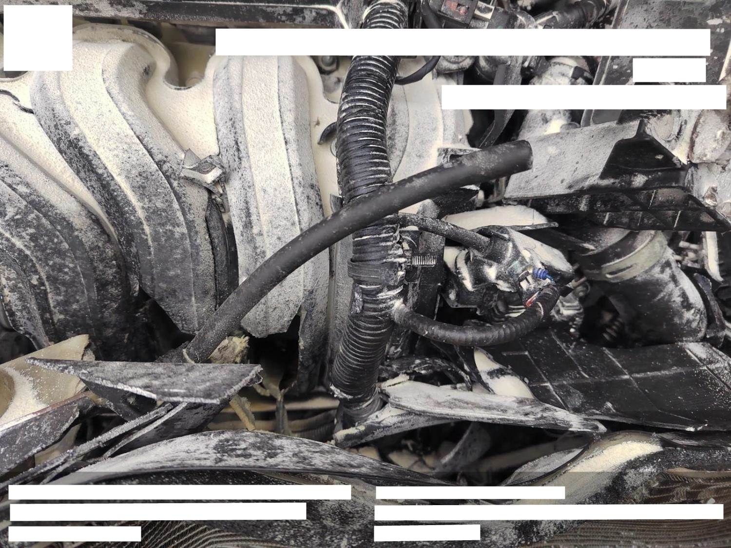 车辆撞击后有起火迹象,施救人员在机舱里喷了灭火剂