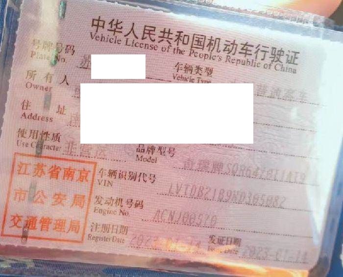 车牌号 苏****** 品牌 奇瑞