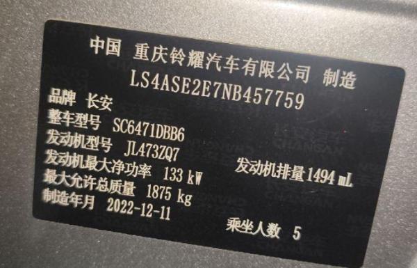 初次登记日期 2022-12-29 车辆名称 长安欧尚Z6
