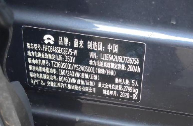 初次登记日期 2020-10-16 车辆名称 蔚来牌