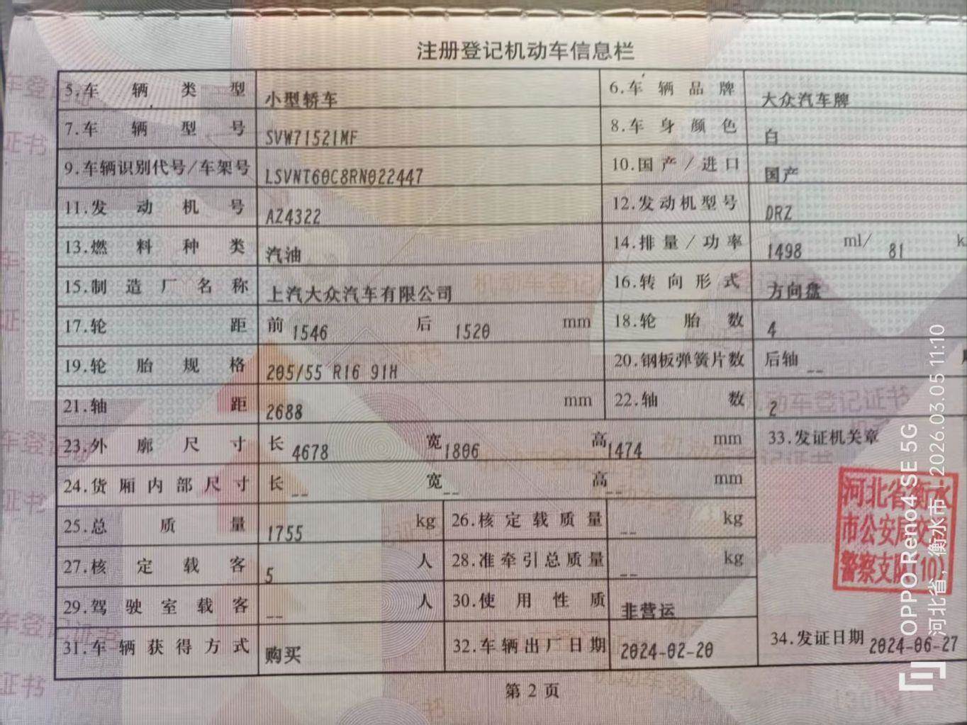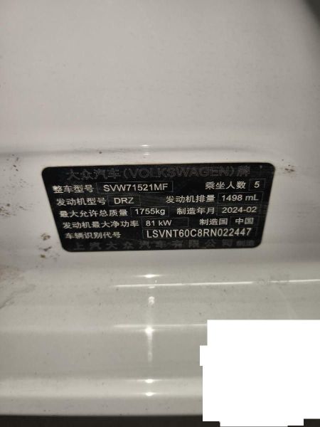 初次登记日期 2024-06-27 车辆名称 大众 朗逸