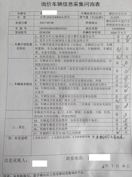 车架号是否受损 使用性质 非营运