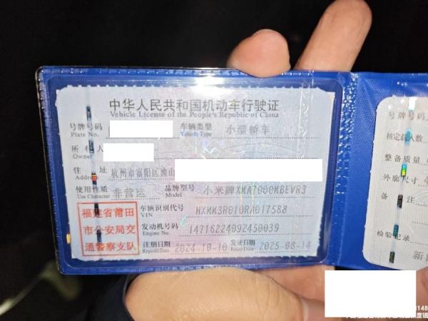 初次登记日期 2024-10-10 车辆名称 小米汽车