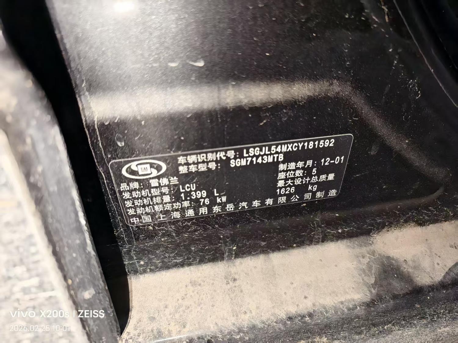 底盘号码 LSGJL54MXCY181592 变速箱类型 手动