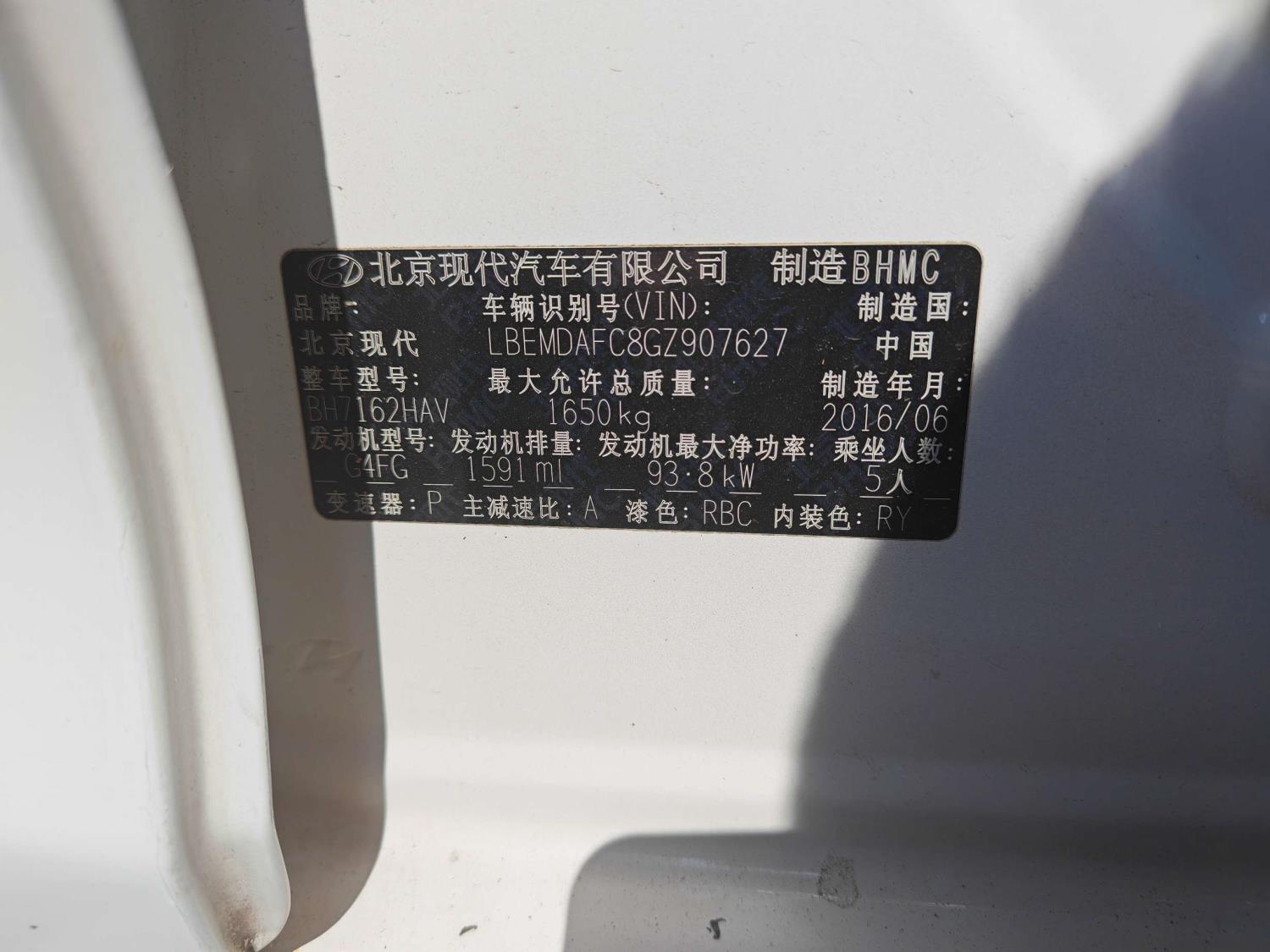 初次登记日期 2016-09-14 车辆名称 现代 朗动