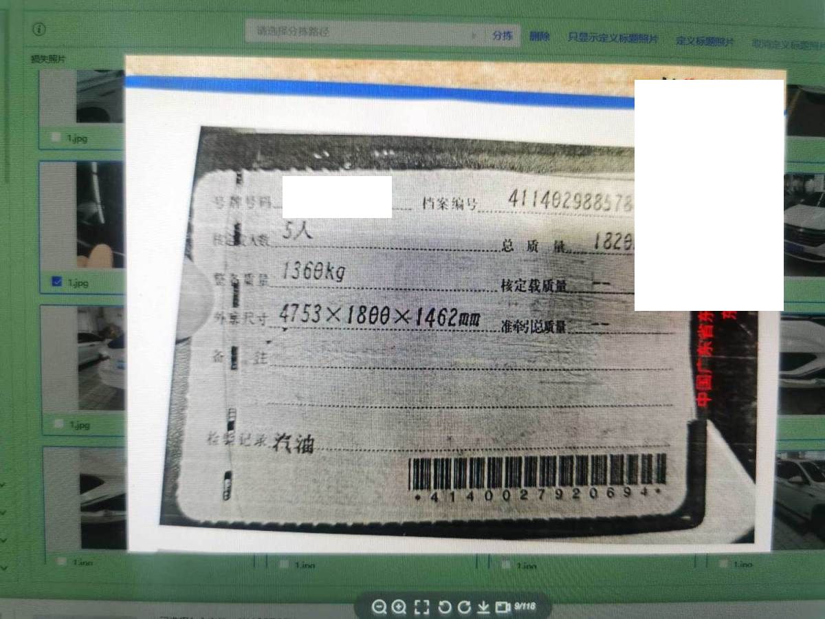 车架号是否受损 未知 使用性质 非营运