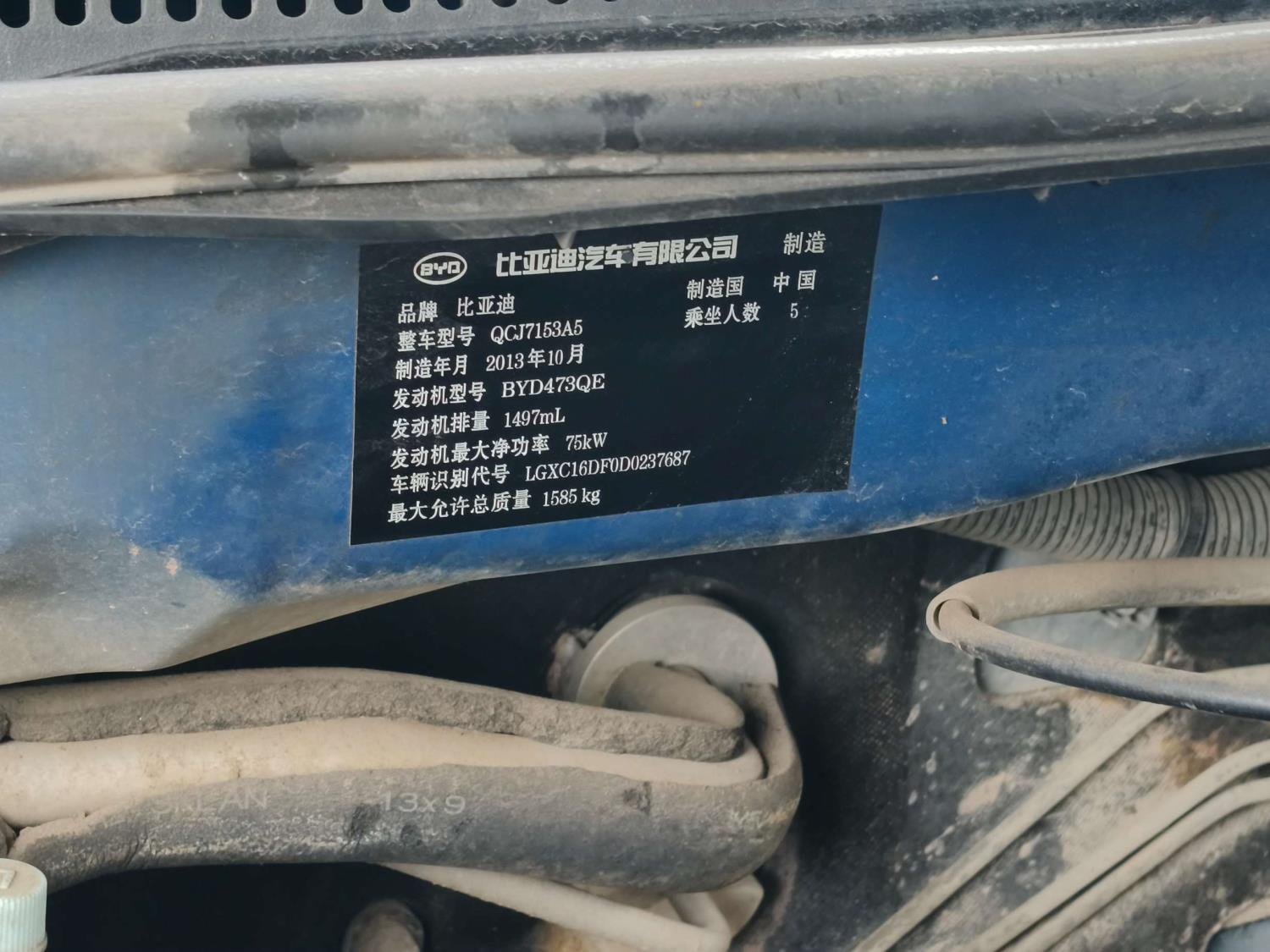 初次登记日期 2013-10-24 车辆名称 比亚迪