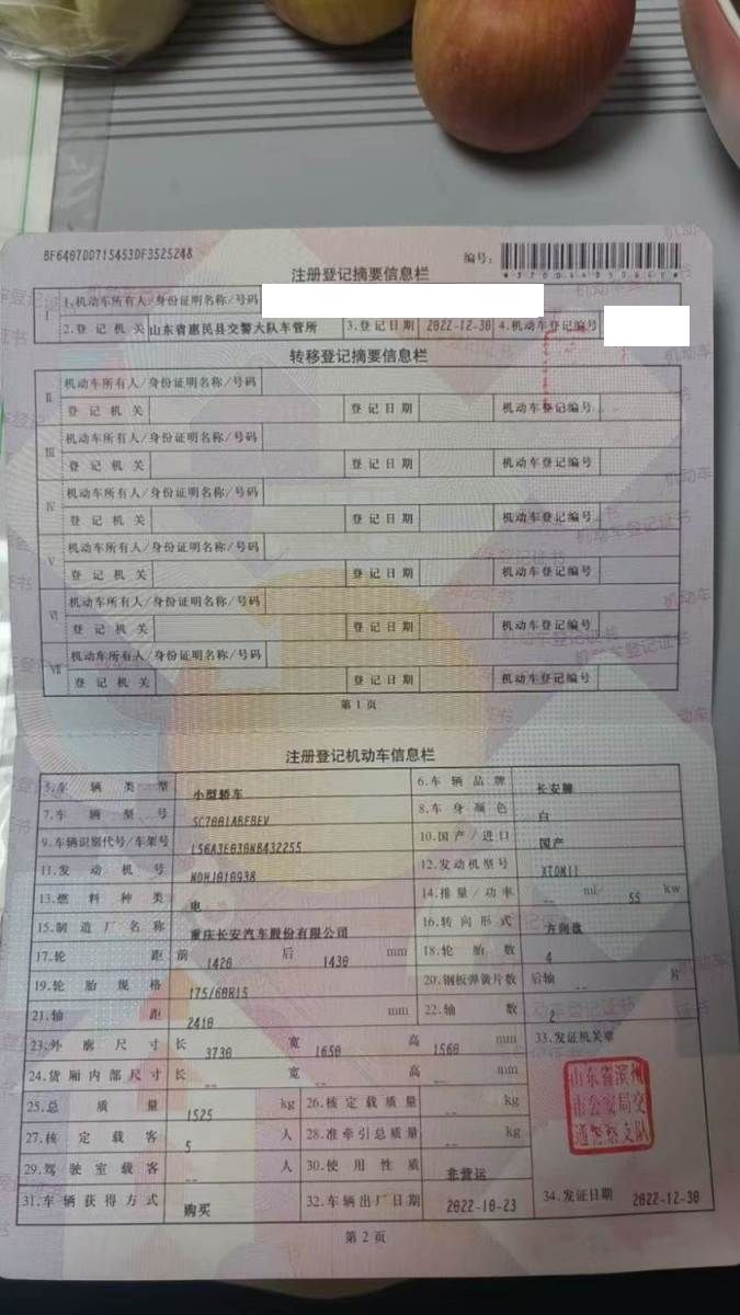 初次登记日期 2022-12-30 车辆名称 长安奔奔