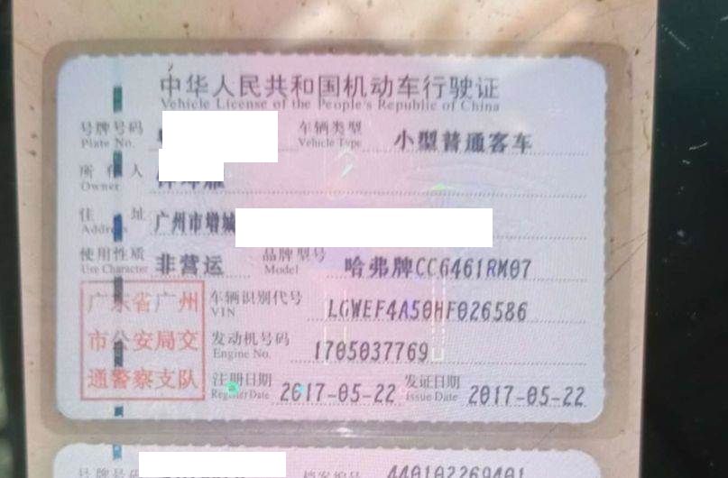 初次登记日期 2017-05-22 车辆名称 哈弗牌