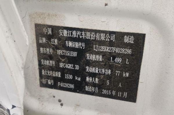 车牌号 鲁****** 品牌 江淮
