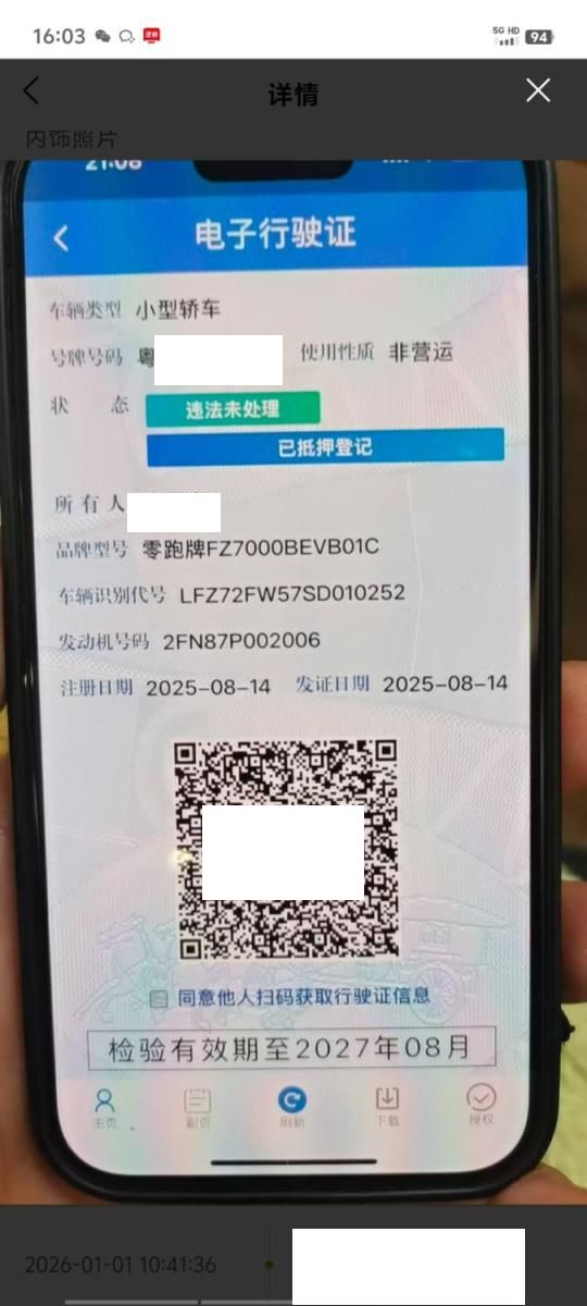 初次登记日期 2025-08-14 车辆名称 零跑汽车