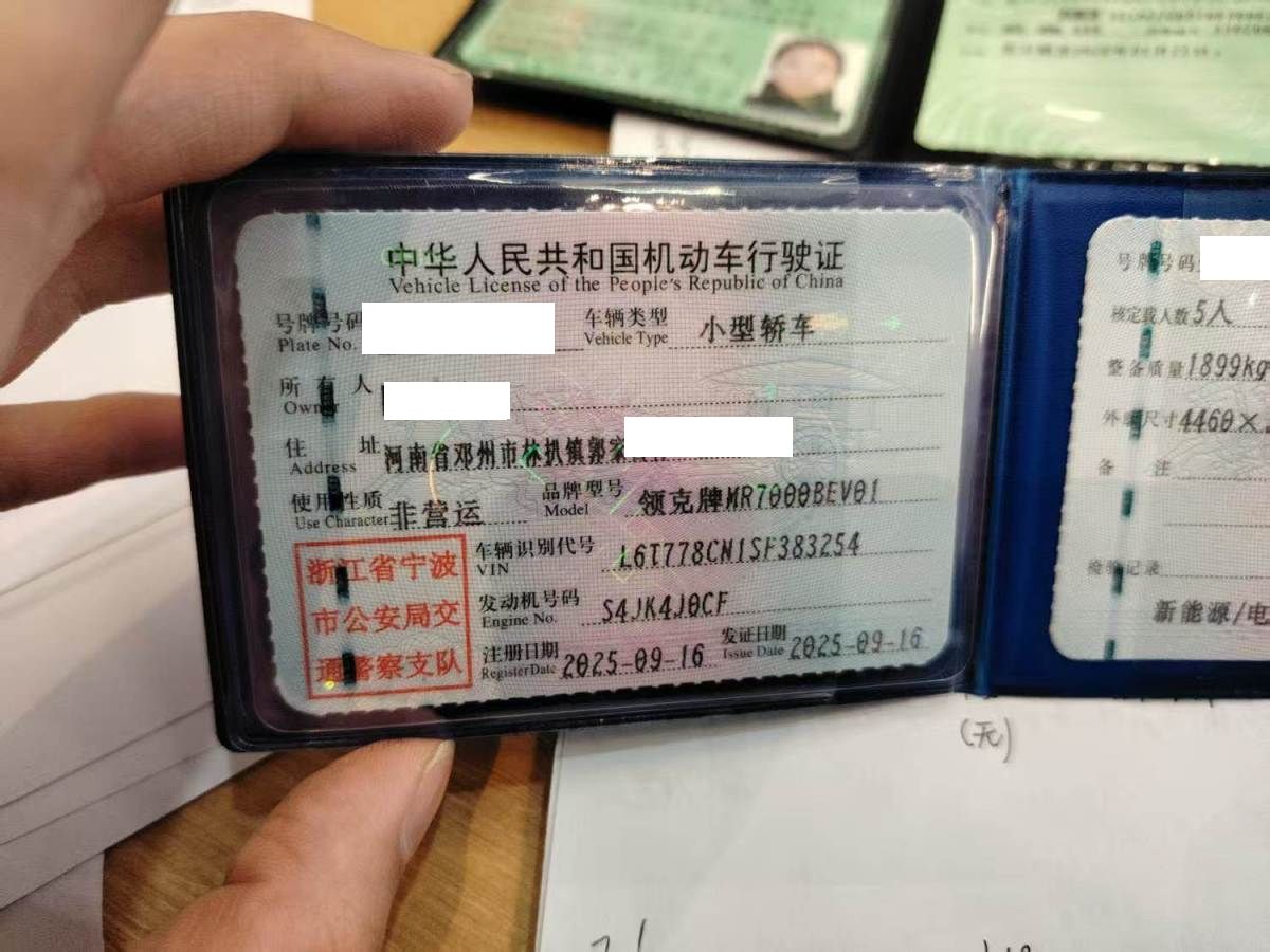 初次登记日期 2025-09-16 车辆名称 领克牌