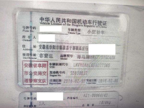 车牌号 皖****** 品牌 海马