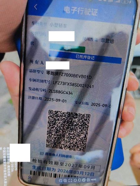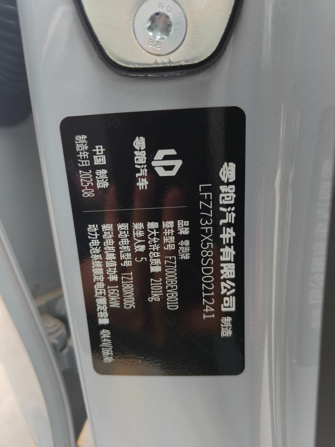 初次登记日期 2025-09-01 车辆名称 零跑汽车 零跑