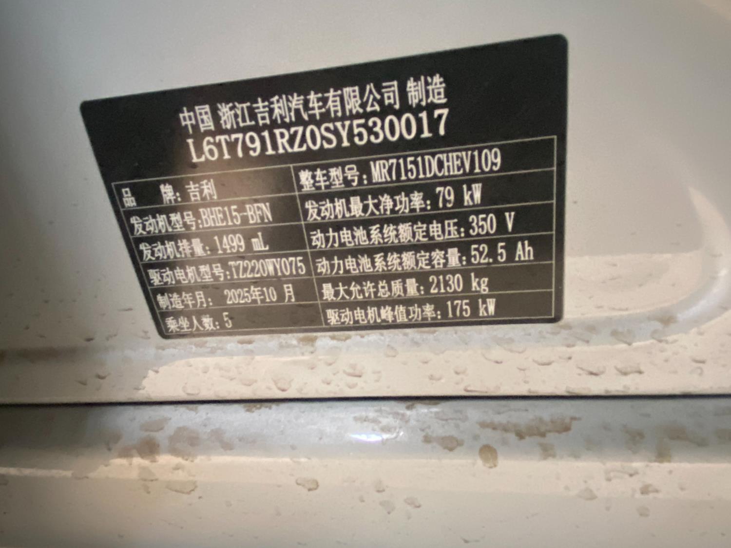 初次登记日期 2025-11-24 车辆名称 吉利银河 银河