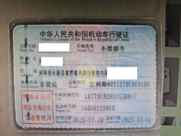 车牌号 豫****** 品牌 吉利