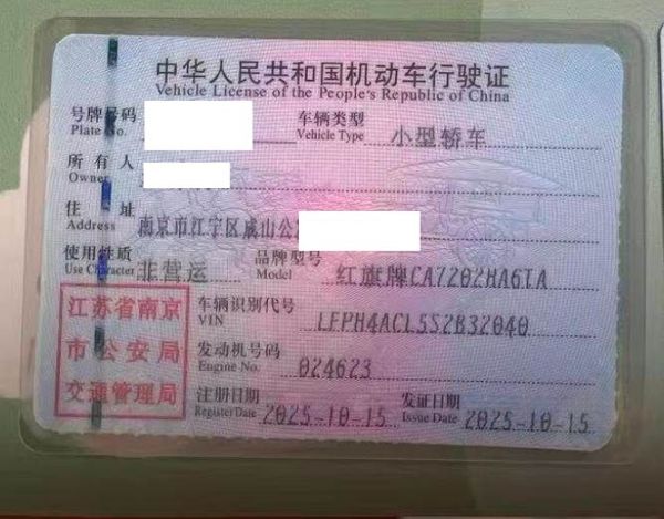 初次登记日期 2025-10-15 车辆名称 红旗H6