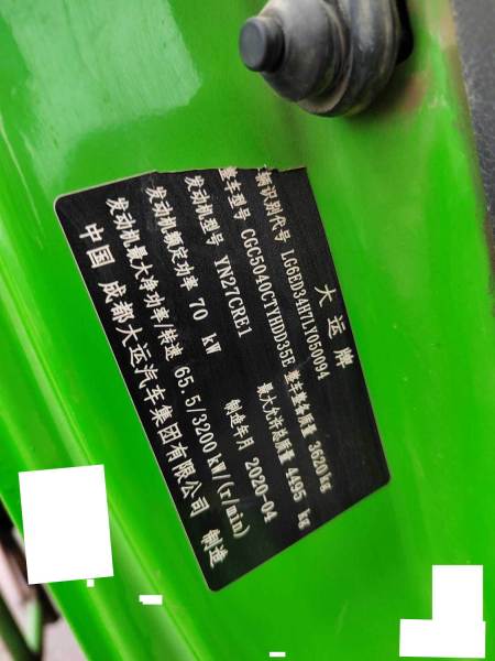 初次登记日期 2020-04-30 车辆名称 大运 新奥普力