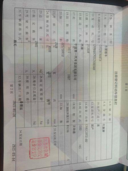 初次登记日期 2025-09-04 车辆名称 红旗H5